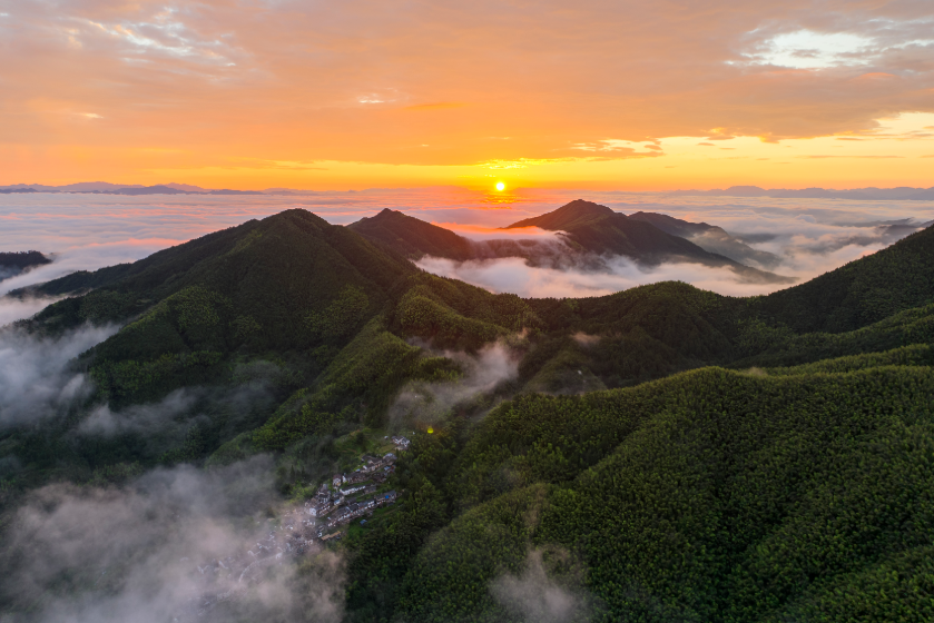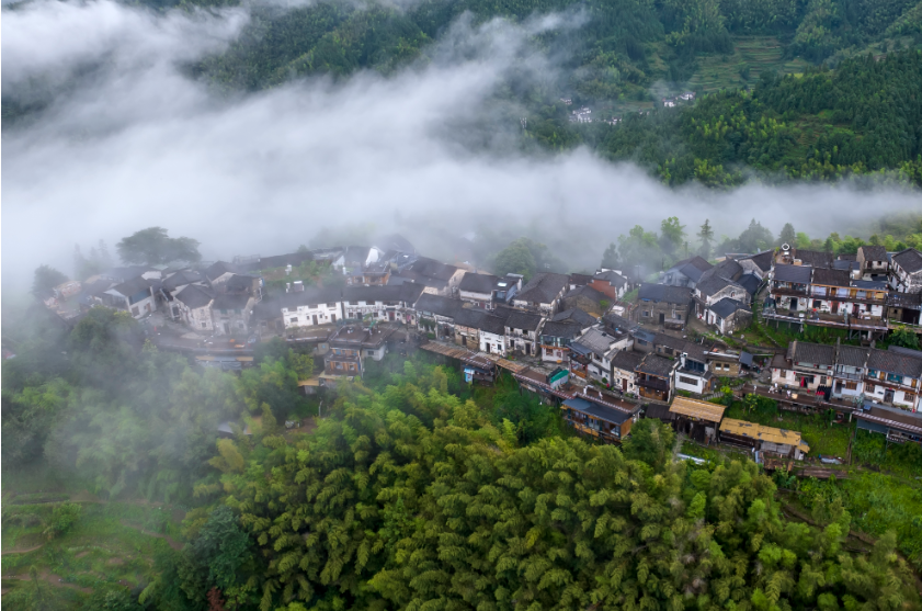 木梨硔村是黄山市百佳摄影点之一,该村生态绝佳,地形独特,地处山脊,三面悬空,徽风浓郁,被誉为“黄山最美的高山村落”,每年有近百天能观赏到云海,尤其雨后初晴时,云海出现的概率更高。樊成柱 摄
