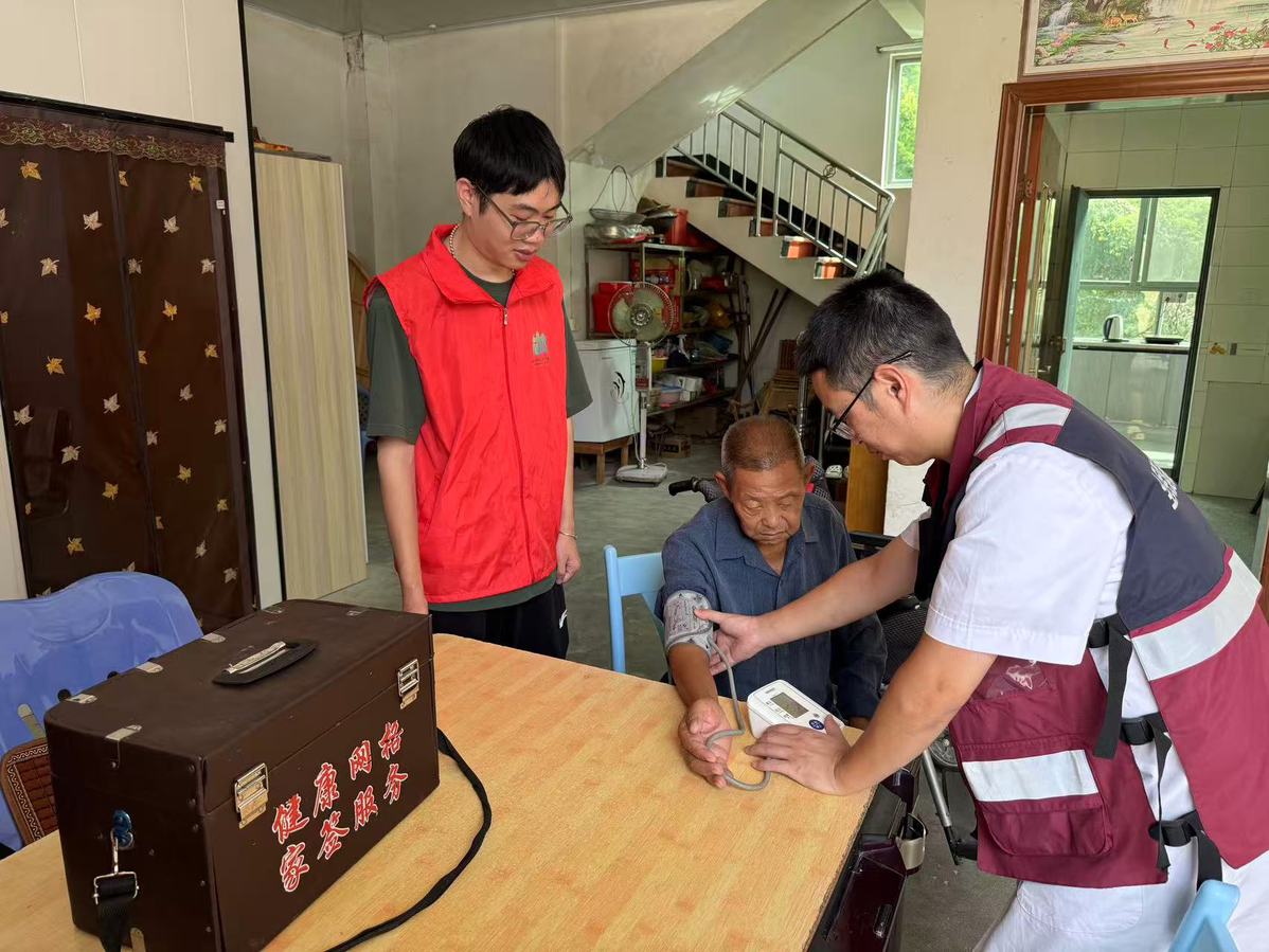 顺阳卫生院医生、志愿者为高长泉老人(中)测量血压。吴茜 摄
