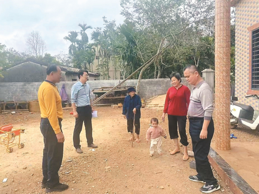 张运清(左一)与吴和(左二)入户走访村民。 (红卫村村委会供图)