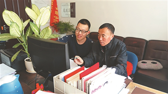 图为宫新博(左)通过电商平台帮助村民销售农产品。