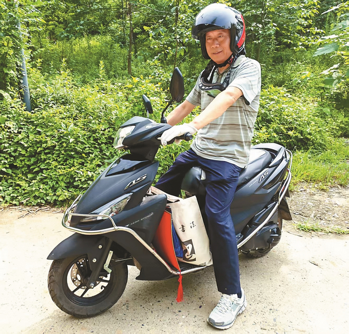 自去年秋天以来,陕西省安康市汉滨区关庙镇包湾村的山路上,经常可以看到一名中年男子骑着一辆半新不旧的摩托车,车座前总挂着三个包:一个装着笔墨纸砚的塑料包、一个记满民情笔记的帆布包,还有一个装着政策文件的公文包。