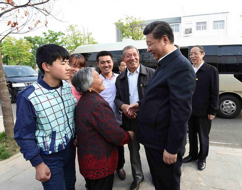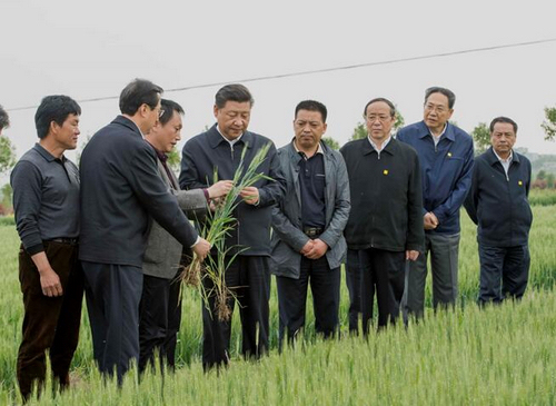 25日下午,习近平来到小岗村4300亩高标准农田示范点,沿着田埂走进麦田,察看小麦长势,向村干部、种粮大户和农技人员了解土地流转、农田整理、种植品种、亩产量、病虫害防治、粮食收购等情况。听了大家介绍情况,总书记说,现在正值抽穗灌浆的关键时期,要加强田间管理,实现丰收,今年的白馍能吃到嘴里了。