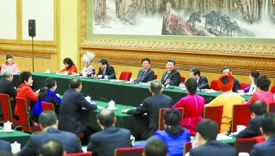 3月8日,中共中央总书记、国家主席、中央军委主席习近平参加十二届全国人大四次会议湖南代表团的审议。 新华社发