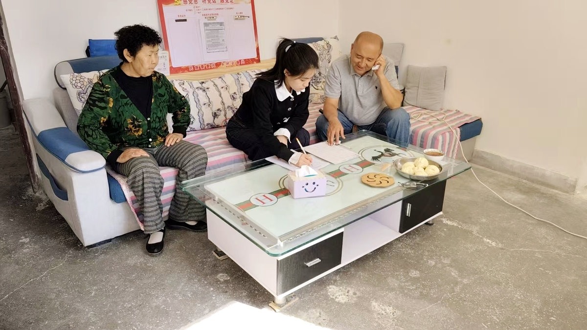 何启慧(中)入户走访。(察汗乌苏村村委会供图)