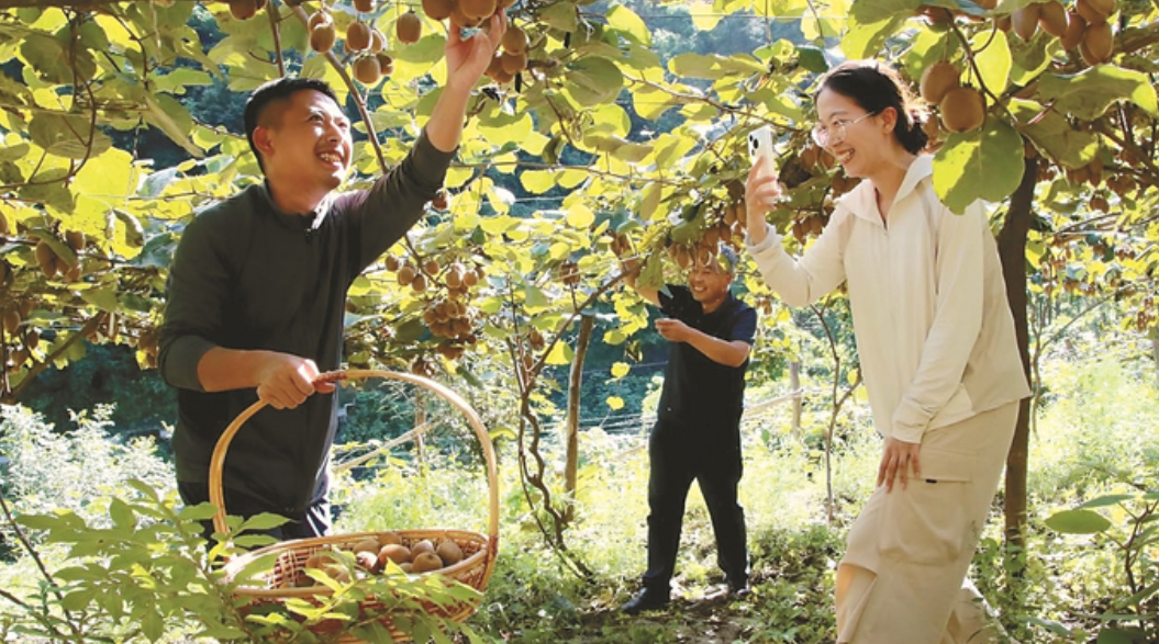 “今年的猕猴桃要比往年好,产量也高,为了让群众增产又增收,我们提前谋划,开通抖音团购,利用短视频和直播在线上积极宣传推介,目前已初见成效,有不少县内外游客前来果园体验采摘。”李家梁村驻村干部陈龙辉忙着给前来采摘体验的客户核销团购券,“我们还积极联系县内各单位工会、商超、客商,打通线下销售路子。”李家梁村的驻村帮扶工作队也自发行动起来帮助村民找销路,帮忙预订猕猴桃鲜果800余斤。线上线下双渠道发力,让越来越多的人品尝到了这份来自大山深处的甜蜜,也让群众收入更有保障了。