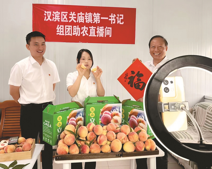 为了帮村民把山货卖出去,刘世杰还学着拍抖音。他举着手机在桃园里拍甜桃,在鸡舍前拍乌鸡……还用心给视频配上解说,视频火了之后,订单从城里“飞”进了山村。村民们笑着说:“刘书记的帆布包里,装着咱的‘致富经’!”