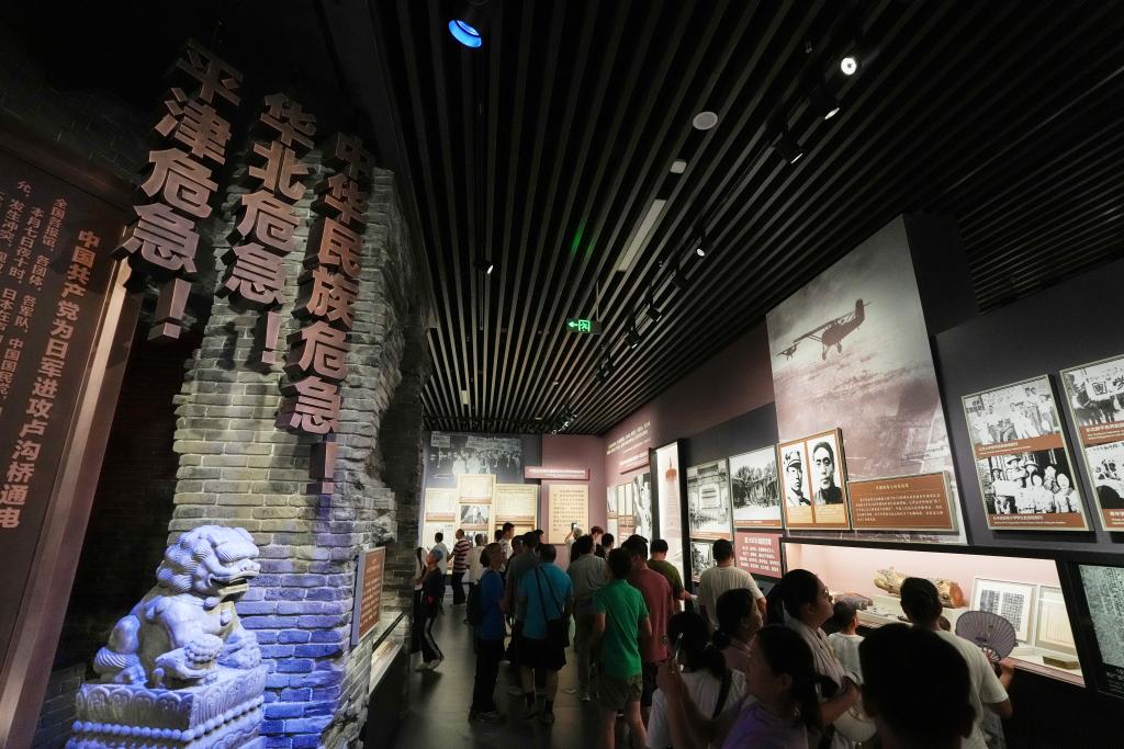 参观者在中国人民抗日战争纪念馆《为了民族解放与世界和平》主题展览参观(2025年7月8日摄)。新华社记者鞠焕宗摄