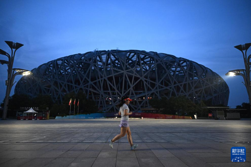 9月3日清晨,市民在鸟巢前晨跑。