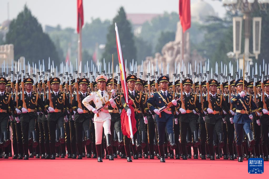 9月3日,纪念中国人民抗日战争暨世界反法西斯战争胜利80周年大会在北京隆重举行。这是国旗护卫队在行进中。