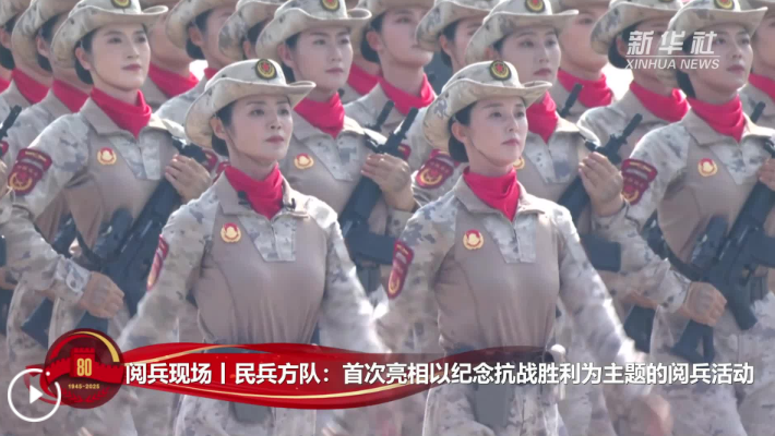 民兵方队全部由女民兵组成。这是民兵首次亮相以纪念抗战胜利为主题的阅兵活动。